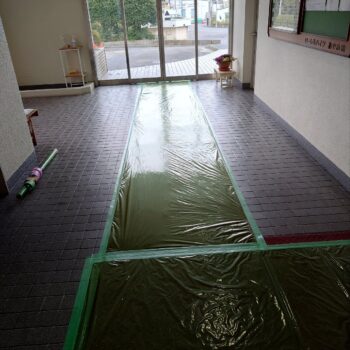 内部玄関、リビングの床の重ね貼り工事の依頼もいただきました。