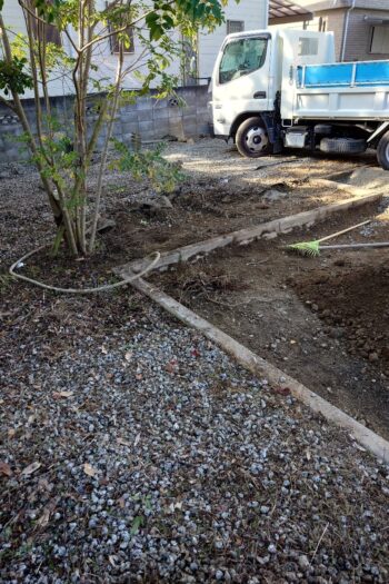 年末よりお庭の雑草対策リフォーム工事を行いました。