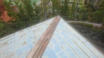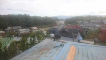 昨年の台風21号で大屋根の板金が飛び、早急に応急処置のみさせて頂きました。