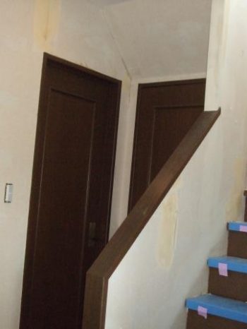 おはようございます、リファイン西和の久松です。今回、京都府木津川市のK様宅で玄関~廊下~階段室~二階廊下にかけてクロスの貼替え工事をさせていただきました。