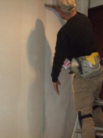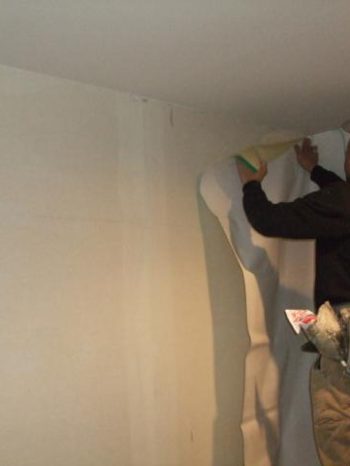 養生をして、今回は玄関ホールで糊付けの作業をさせていただきました。