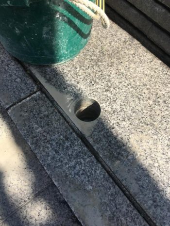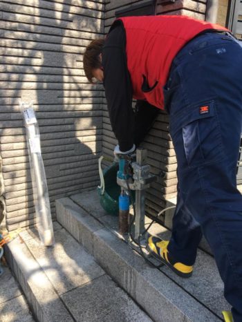 専用のドリルで水を流しながら こんなに綺麗に開ける事ができます。