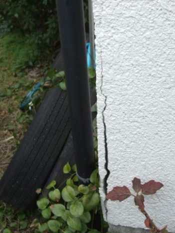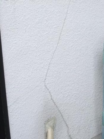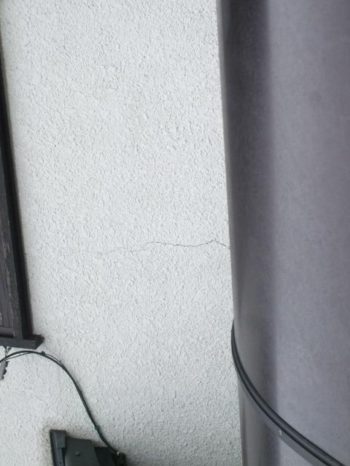 基礎上40センチ程までおおきく割れており、ここから横に二間程、壁のモルタルがくの字にめくれあがっておりました。モルタルをおとして復旧してたら大事になるので、壁内部にコーキングを注入して、浮いたモルタルをボルトで締め付けて納めようと思います。他にもクラックというにはほどとおい、割れが多数有り。