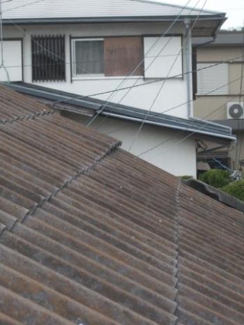 屋根の奥のほう、わかりますかね?瓦が浮いてます。去年の台風にやられたみたいです。これも浮きをなおして、新しいビスで締め付けなおさないといけません。近じか工事着工いたします。また、工事の様子はUPさせていただきます。