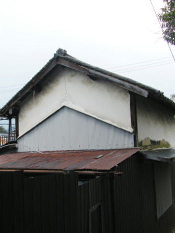 長年の風雪に耐えてきた土蔵物入れの補修工事、左官一次工事完了。