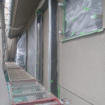 梅雨入りで少し段取り予定が変更になっておりますが、外装工事も進めています。
