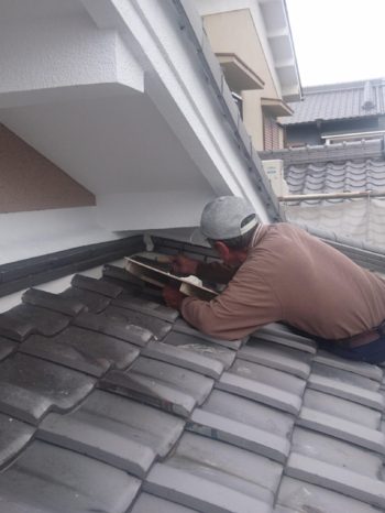 悪い部分は土の塗り直しをしてから、面戸漆喰を仕上げていきます。