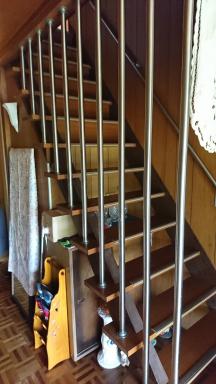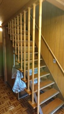 木製雨戸改修工事中のK様邸で階段 段違いルーバー、手すり