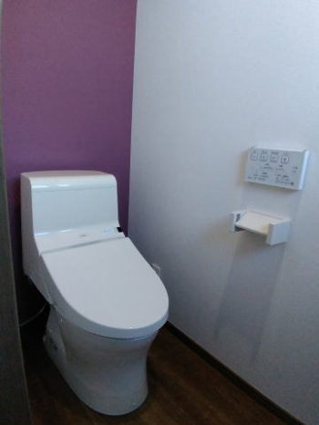 トイレの壁面は、一面のみ違うクロスを採用されました。
