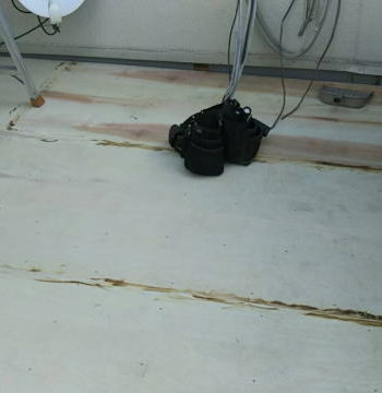 さて奈良市のA様、20年以上のお付き合いをさせていただいていますが、二階のベランダの床FRP防水の経年劣化で雨漏りが発生しました。