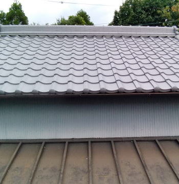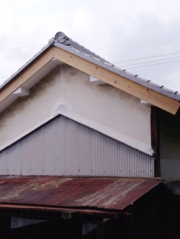 長年の風雨で傷んでいた外壁と屋根部分、昨年の台風で更にひどくなり今回改修工事をさせていただきました。