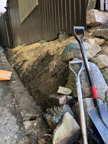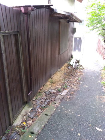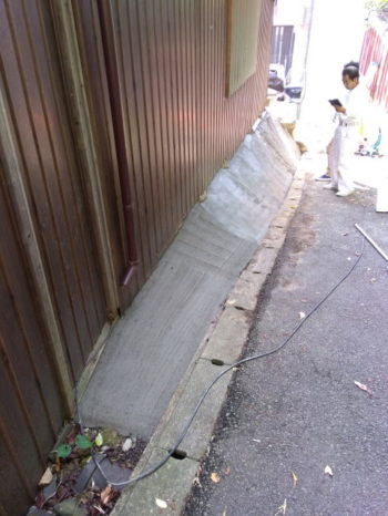 大和高田市のK様邸の土蔵補修工事、完成後に裏の基礎部分の補強工事の追加をご依頼いただきました。