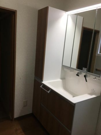 五條市N様邸 水廻り最後は洗面化粧台取替工事です。