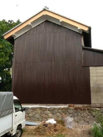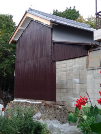 さて、大和高田のK様宅の土蔵工事、当初の工事は終わったのですが、やはり綺麗になると古いものが目立ち、K様からカラートタンの塗装工事をご依頼され、先週に完了しました。