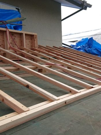 来週より瓦葺き下地壁際と水切り下地の板金工事に進みます。
