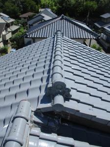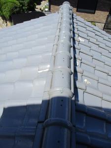 昨年の台風の前、別件でお伺いした折、何気に屋根を見ると棟瓦がずれている様な気がして、瓦屋さんに見てもらった所、相当歪んでいるとの事で、棟の瓦を積み替えをする事に成りました。K様長い間待っていただいて有難うございます。