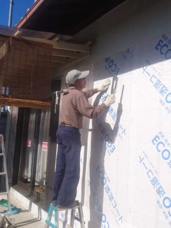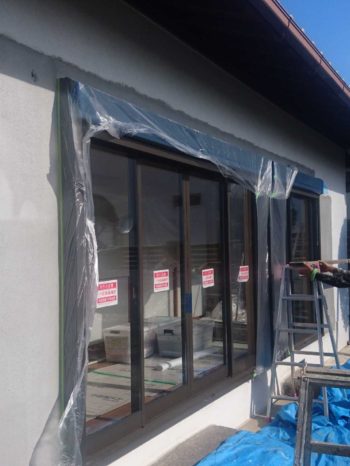 大工さん・内装工事も終わり、外部左官・塗装工事を進めています。