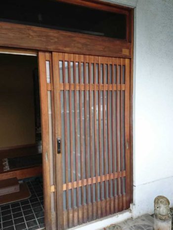 以前は木製の玄関ドアで隙間風や戸車の音ガラガラとうるさく悩んでおられました。