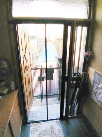 さて生駒市のK様邸、以前から何回もリフォーム工事をさせていただいていましたが、今回新築時の木製扉も少し年数が経ち夏場には内玄関も暑さがこもるので、一日で取替できるLIXIL玄関扉Rechentの通風タイプに取り替えさせていただきました。