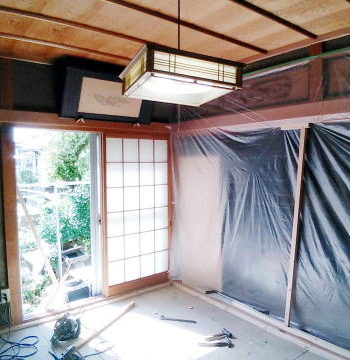 大和郡山市のO様邸、今回は奥の和室を畳からフローリングに、そして襖も和柄から木目柄に変身のご依頼です。