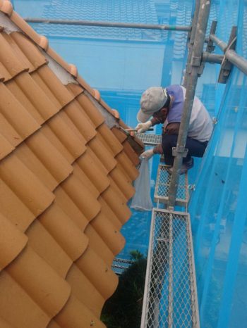 東大阪・T様邸 屋根S瓦 漆喰やり替え工事 進めています。
