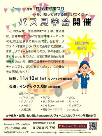 また秋・リフォームシーズン恒例のバス見学会(住宅設備・建材まつり)に参加します!