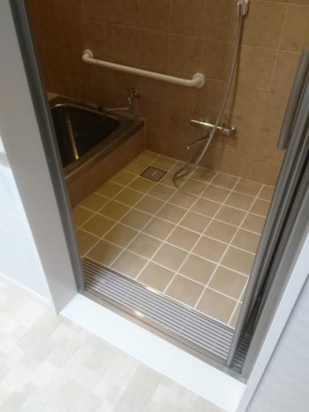 浴室出入り口の段差解消で浴室床タイルを上げました。