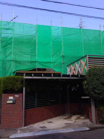 先週から足場組立が始まりました生駒市のS様邸、一風変わったアクセントデザインの外部塗装工事をご依頼いただきました。