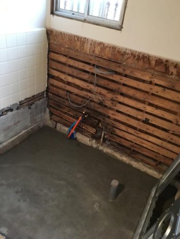 ユニットバスを組みたてる前に 基礎となる土間の部分をコンクリート打ちました。