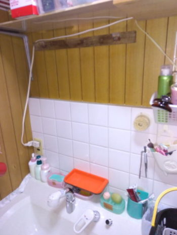 K様の背板合板の破損したミラーキャビネットを、新しいものと交換しました。