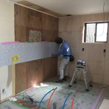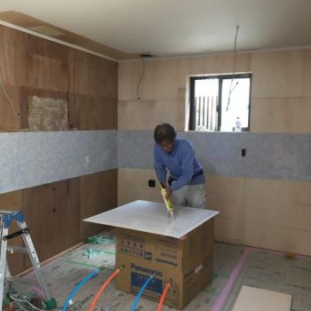 先にキッチンパネルを貼っていきます。