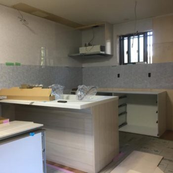 大和郡山市K様邸 和室及びキッチン改装工事の現場です システムキッチン取付工事の様子です。