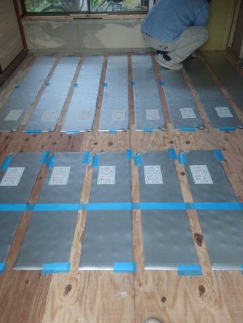 その後 床レベル調整、床暖房パネル工事を進めて行きます。