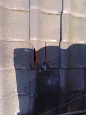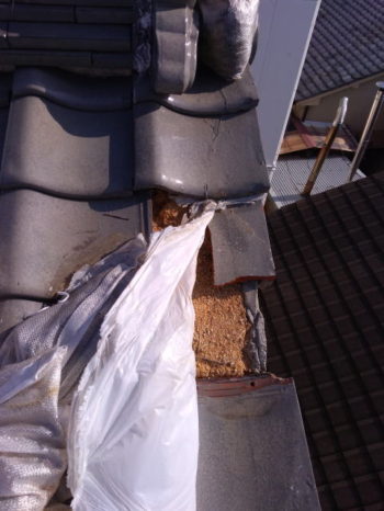 袖瓦も割れていましたが現地に無かったため、後日改めて持参して手直しすることにいたしました。