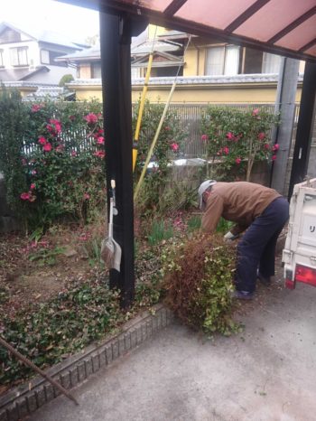 最初に植木やお花を撤去して~整地をします。