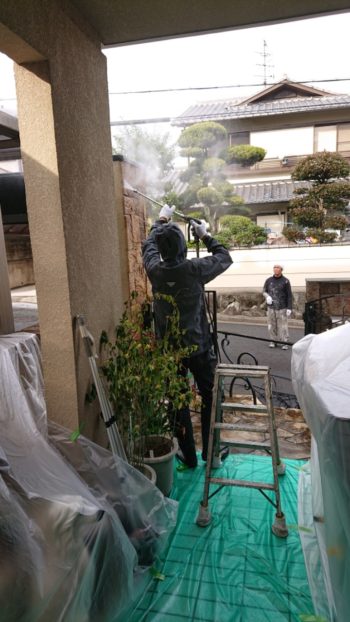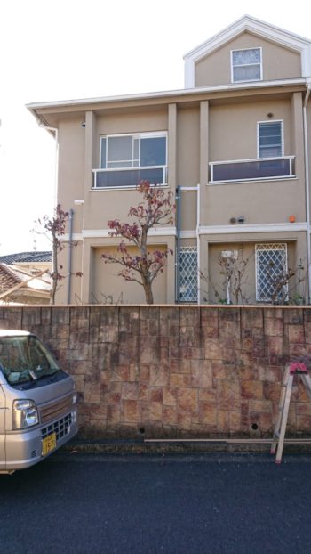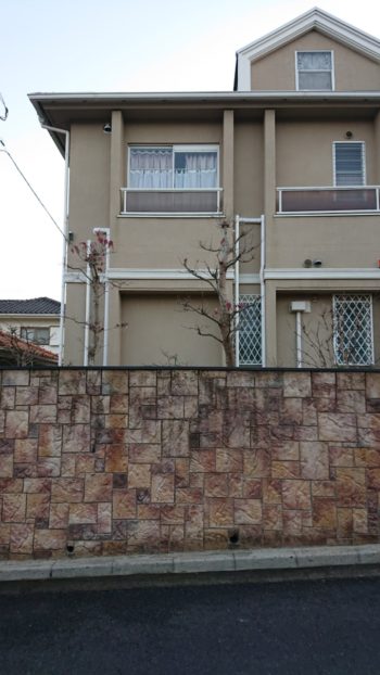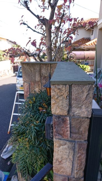 | 雨だれによる 人工石の塀の洗浄です。 | 洗浄後 | |