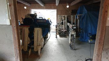 | 屋根の葺き替え準備の足場の完成。 | 農機具の移動無事格納です。 |
