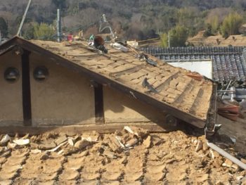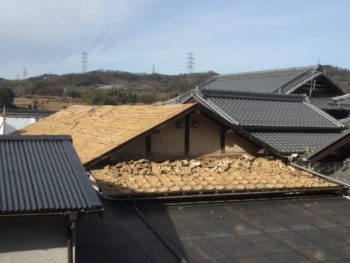 早い!午前中で屋根瓦おろしと土おろしの完了です。