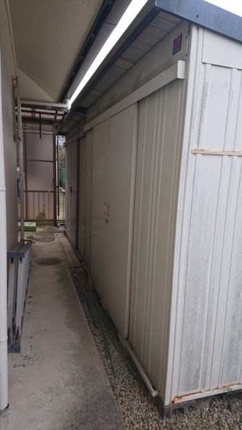 | 物置2台移動による土間打ちです。 | ||