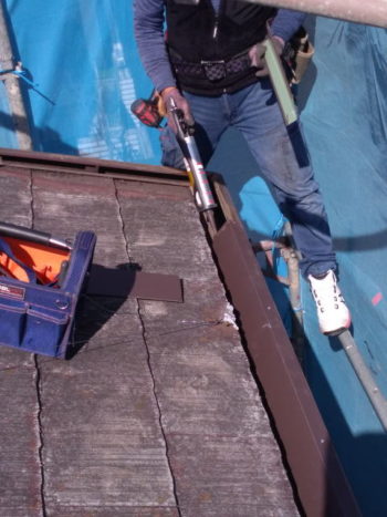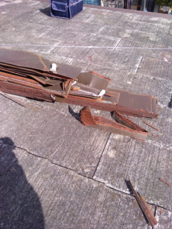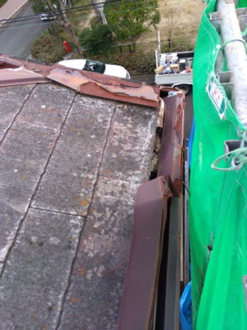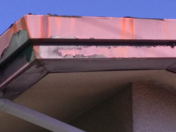 大阪を襲った台風で大屋根の樋カバー鉄板が相当に傷んでおり、その取り換えもさせて頂くことに。