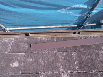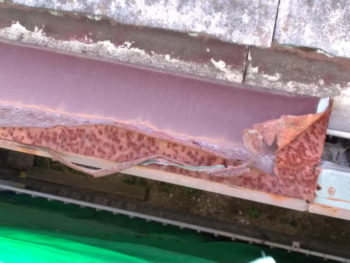 先ずは足場組立から開始し、樋カバー鉄板の補修工事です。