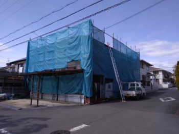 昨年外装塗装工事をさせて頂きました生駒市のS様邸、そのご縁でお隣のK様から外装リフォームのご契約をいただきました。