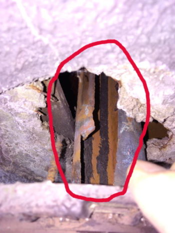 ベランダの排水口から集水器に誘導している銅製のパイプが、ご覧の通りひどく腐って半分近く無くなっていました。