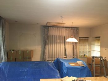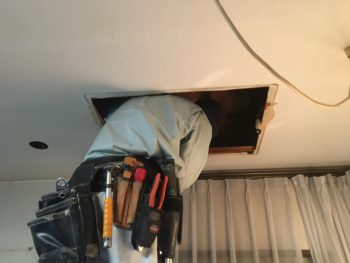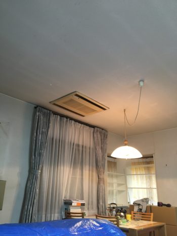 潰れた天井埋め込みのエアコンをこの機会に撤去します。