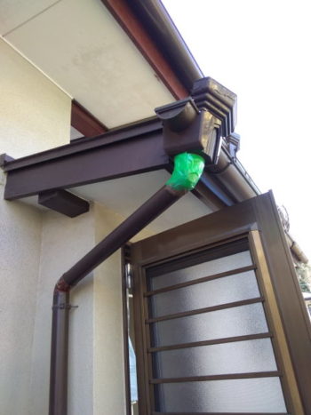 先日、勝手口扉が当たって雨樋を壊したレポートをさせて頂きましたが、扉制御のドアクローザー取付の後、雨樋の修理も終わりました。