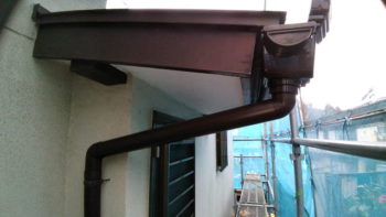 外部塗装工事開始と雨樋補修完了。