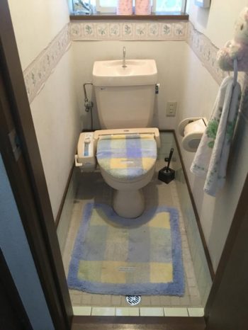 既存トイレ床のタイルをクッションフロアーに…