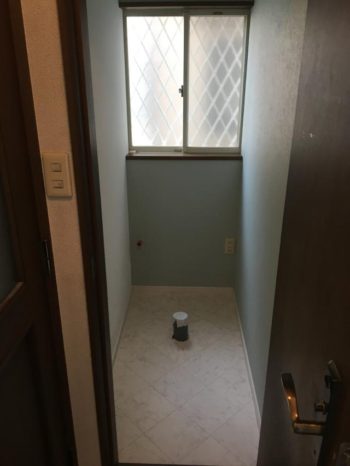 床クッションフロアー 壁・天井ビニールクロス貼って便器取付に一日