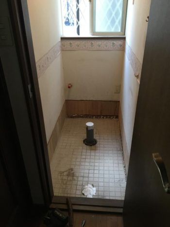 便器外してタイルの上にコンパネ下地大工工事に一日