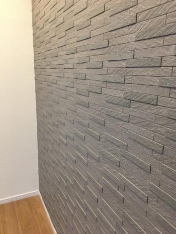奥様のご希望で14帖のリビングダイニングの壁を一部アクセントウォールにLIXILエコカラットプラス張ることにしました。